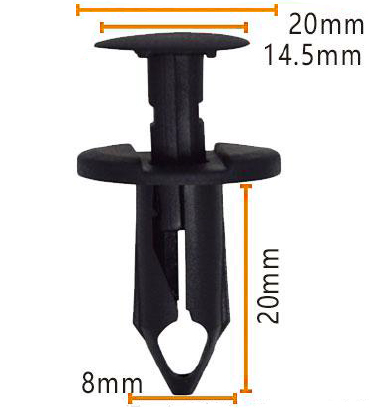 Cơ thể của clip có chiều dài 20 mm và thon xuống một cơ sở rộng 8 mm, cho phép nó vừa vặn vào vị trí và duy trì sự ổn định ngay cả dưới áp lực. Thiết kế độc đáo của các clip này cho phép chúng được sử dụng trong một loạt các ngành công nghiệp, bao gồm ô tô, xây dựng và sản xuất.
