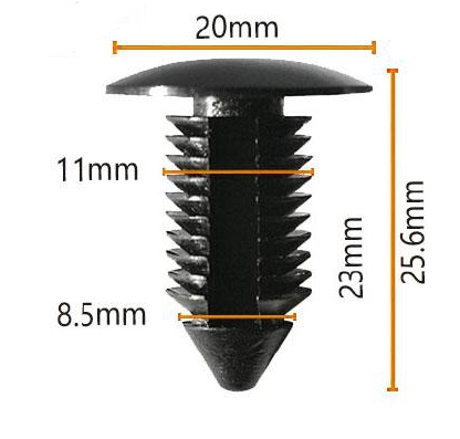 Tổng chiều dài của dây buộc là 25,6 mm, chiều rộng là 20 mm và chiều cao đầu là 11 mm.